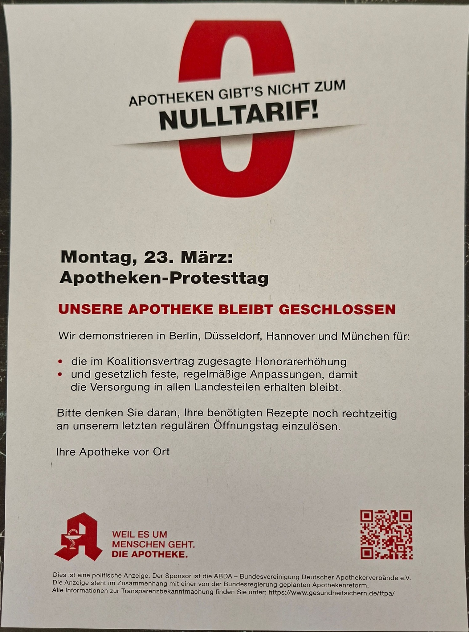Unsere Apotheke bleibt an diesem Tag geschlossen!